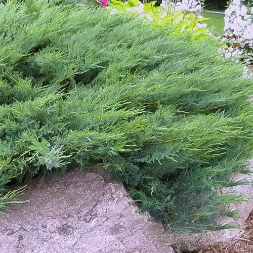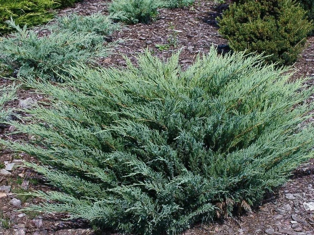 Быстро нарастающий кустарник до 1 м высотой, а в диаметре может достигать 2 м. Хвоя сизо-зеленая, мягкая. Отличается очень быстрым ростом - 20-30 см в год.