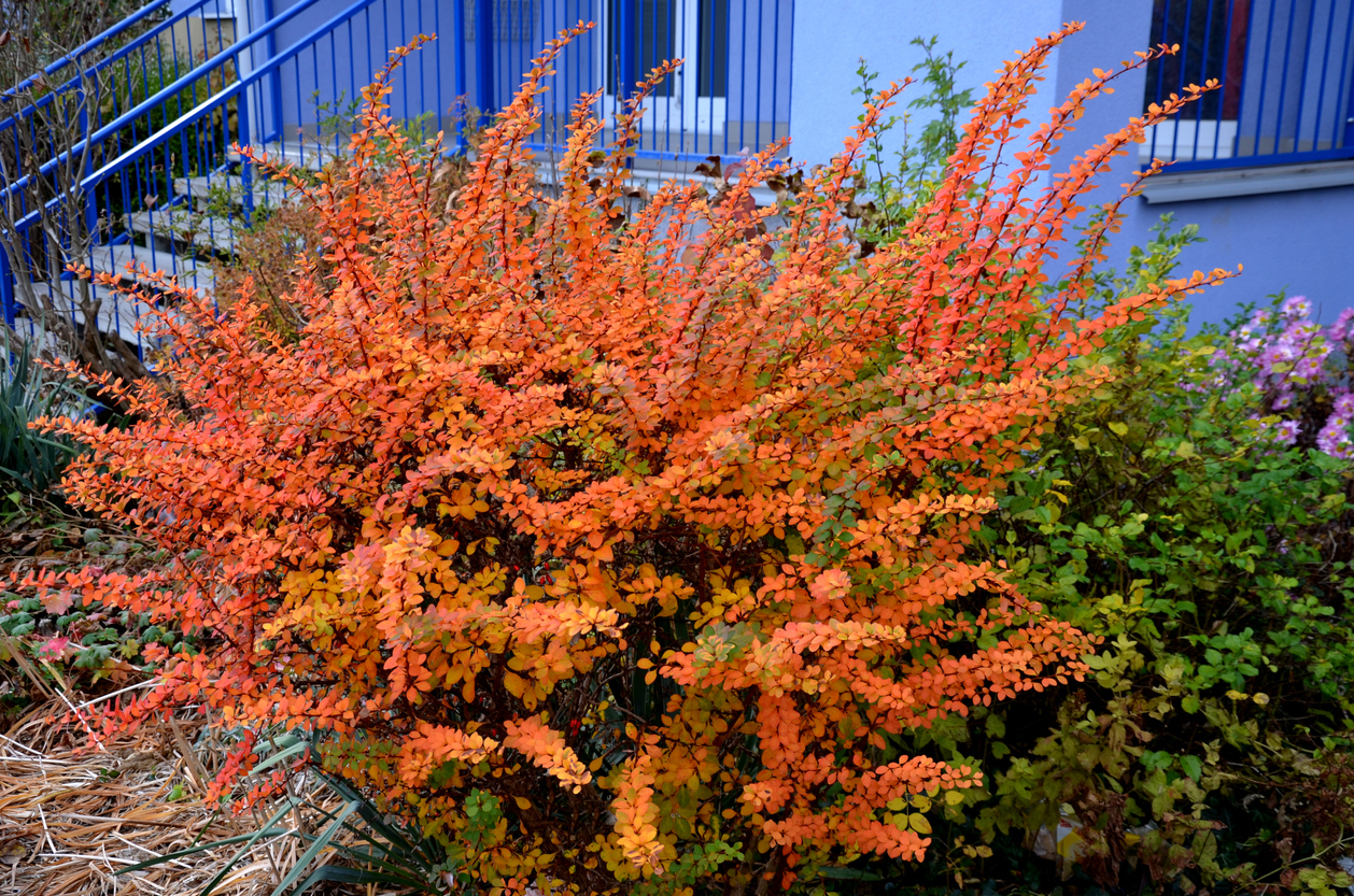 Наипрекраснейший сорт барбариса - не более 1м в высоту, разрастается в ширину до 2м, так что отлично работает нижним ярусом композиций. Декоративен весь сезон: плотная крона из мелких листочков весной ярко-зелёная, к середине лета становится желтоватой, а осенью приобретает яркий оранжевый цвет. Прекрасно растёт даже под деревьями в тени, замечательно переносит обрезку и нетребователен к уходу.