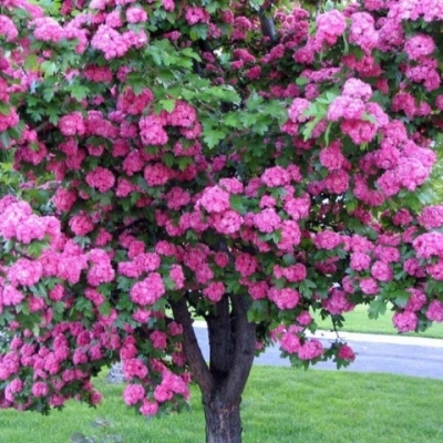Декоративное дерево (иногда куст) высотой 3-5 м. Имеет крону правильной формы и потому украшает сад в любое время года. Начиная с конца мая и в течение 15-20 дней боярышник особенно красив. На ветках появляются восхитительные белые цветы, похожие на розочки, которые со временем меняют цвет от белого к нежно-розовому, а потом насыщенно-розовому. Осенью листва приобретает ярко-желтую окраску. "Тоба" практически не даёт плодов, этот сорт сажают исключительно для украшения. В отличие от других сортов боярышника у него мало колючек. Светолюбив, малотребователен к почве.