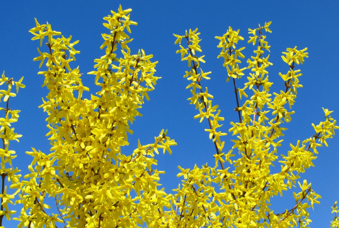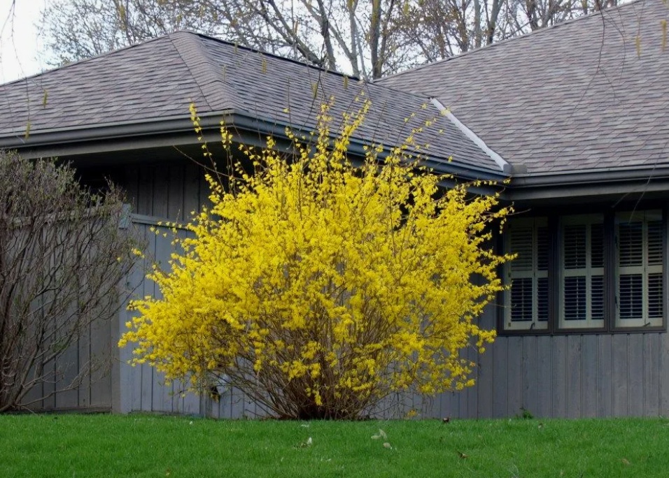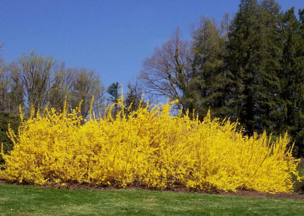 Раскидистый кустарник высотой до 2 - 2,5м с симпатичными плотными листочками. Очень красива ранней весной, поскольку зацветает одной из первых в апреле, ещё до роспуска листьев, и цветёт около 20 дней. Цветки у форзиции золотисто-жёлтые, что достаточно редко встречается на кустарниках. Для посадки нужно выбирать тёплые, защищённые от ветра места, в остальном кустарник совершенно нетребователен.