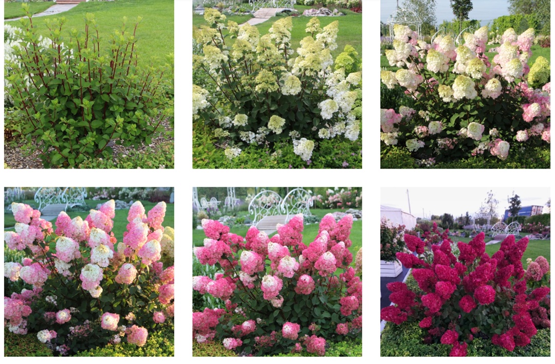 Совершенно уникальный сорт с потрясающей сменой окраски! Молочно-белые соцветия к концу июля становятся светло-розовыми, к середине августа розовый цвет приобретает особую яркость, а к концу лета появляется изумительный рубиновый окрас. Высота взрослого куста порядка 1,3 метра. Растение хорошо переносит российские зимы.