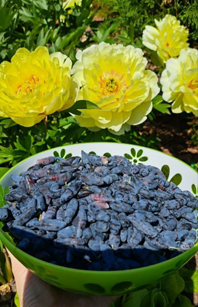 Этот сорт жимолости считается раннеспелым, ягоды появляются уже в первой половине июня. Они обладают приятным сладко-кислым вкусом и содержат большое количество витамина С. К недостатком этого растения следует отнести необходимость посадки рядом нескольких соседей-опылителей. Зато "Синяя птица" родом из Сибири, переносит морозы до -40 градусов без утепления. Сухой и жаркий климат её угнетает. Куст довольно высокий - в среднем 1,6 м, может вырасти и до 2 м.