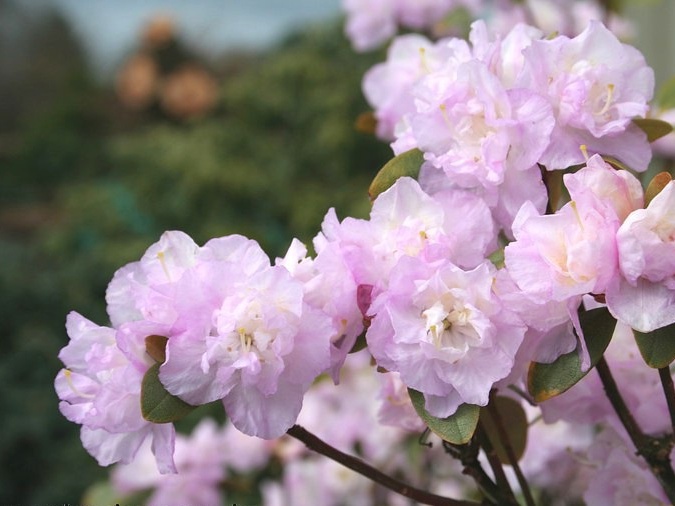 Компактный и плотный кустарник до 1 м. Полувечнозеленый, листья сохраняются 2-3 года, к осени окрашиваются в темно-пурпурные тона. Цветки махровые сиреневато-розовые с более светлой серединкой, с легким ароматом, цветет со 2 половины апреля. Очень зимостоек до -32. Беспроблемные растения, если создать им правильные условия: кислый торф, желательно с горстью лесной земли, чтобы заселить микоризу, притенение в жаркие часы, влажный воздух и почва, но без застоя воды, мульчирование хвоей или корой. Хорошо растут под сквозистым пологом деревьев с глубокой корневой системой. Практически не повреждаются вредителями и болезнями, дают великолепное цветение весной. Растут медленно, в молодом возрасте рекомендуется укрывать на зиму. Прекрасно сочетаются с хвойными, вересками, эриками, а также подходят для садов японской стилистики.