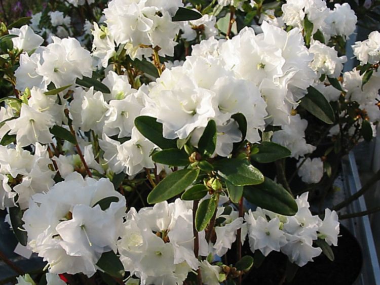 Полувечнозеленый, плотный прямостоячий кустарник до 1 м высотой. Листья светло-зеленые, с небольшим блеском. Цветки белые, полумахровые, без аромата, цветет в апреле-мае. Зимостоек до -29. Беспроблемные растения, если создать им правильные условия: кислый торф, желательно с горстью лесной земли, чтобы заселить микоризу, притенение в жаркие часы, влажный воздух и почва, но без застоя воды, мульчирование хвоей или корой. Хорошо растут под сквозистым пологом деревьев с глубокой корневой системой. Практически не повреждаются вредителями и болезнями, дают великолепное цветение весной. Растут медленно, в молодом возрасте рекомендуется укрывать на зиму. Прекрасно сочетаются с хвойными, вересками, эриками, а также подходят для садов японской стилистики.