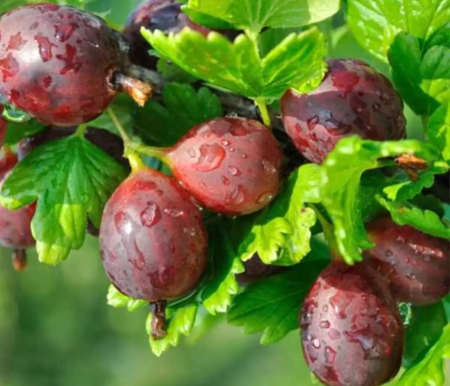 Высокорослый раскидистый куст. Ягоды среднего размера, весят по 3-5 г, покрыты плотной кожицей темно-розового цвета с матовым налетом. Срок созревания среднепоздний. Приятный сладкий вкус и хорошая урожайность, плюс устойчивость к болезням.