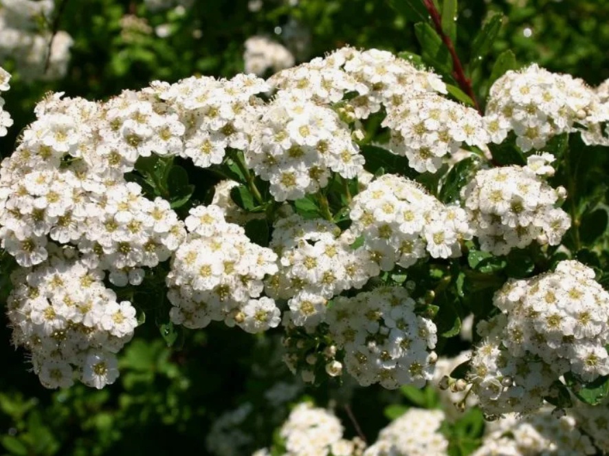 Этот изящный куст 1,5м в диаметре зацветает в июне, принимая эстафету у раннецветущей спиреи "Грефшейм". Крона очень плотная, листочки мелкие и сохраняют насыщенно-зеленую окраску до самой осени. Хорошо переносит обрезку, нетребовательна к условиям, может подмерзать в суровые зимы, но быстро восстанавливается.
