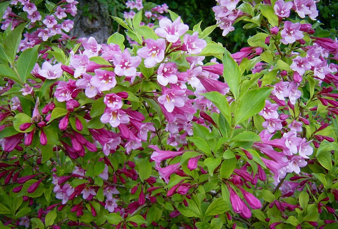 Не самое обычное для наших садов, но весьма привлекательное растение. В высоту достигает полтора -два метра, своими розовыми колокольчиками радует в конце мая - начале июня. Для того, чтобы вейгела полностью раскрыла свою красоту, необходимо подобрать защищённое от сквозняков место, например, у стены дома, укрытие на зиму не требуется.