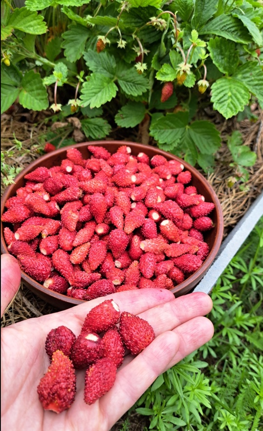 Своя земляничка на грядке, да ещё и весь сезон аж до снега - это здорово! Кстати, отлично подходит как почвопокровник под плодовыми деревьями. Нарастает быстро, ухода не требует, усов не даёт, плодоносит на пятёрку даже в полутени. Ягода очень крупная для земляники, вкус прекрасный.